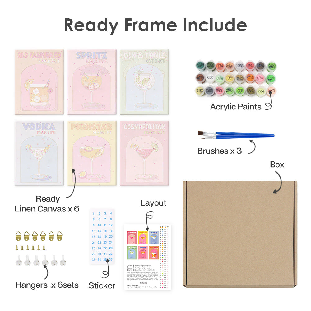 Upptäck alla viktiga saker som är prydligt förpackade i vårt Paint by Numbers-kit. Med varje komponent märkt och redo att användas kan du fokusera enbart på din konstnärliga resa. Från de livfulla färgerna till precisionspenslarna har vi sett till att ingenting står mellan dig och din duk. Detta kit är lämpligt för både nybörjare och erfarna konstnärer och erbjuder en ren, oavbruten målningsupplevelse.