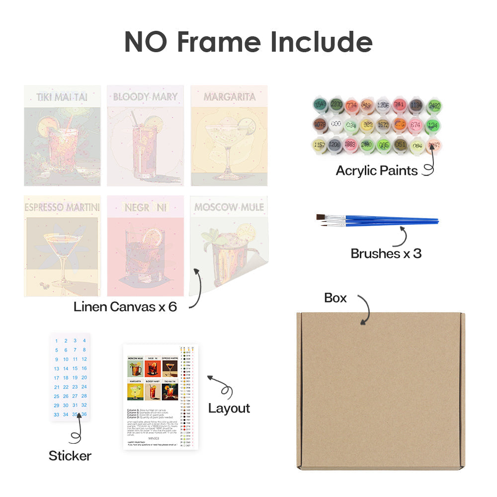 Upptäck alla viktiga saker som är prydligt förpackade i vårt Paint by Numbers-kit. Med varje komponent märkt och redo att användas kan du fokusera enbart på din konstnärliga resa. Från de livfulla färgerna till precisionspenslarna har vi sett till att ingenting står mellan dig och din duk. Detta kit är lämpligt för både nybörjare och erfarna konstnärer och erbjuder en ren, oavbruten målningsupplevelse.