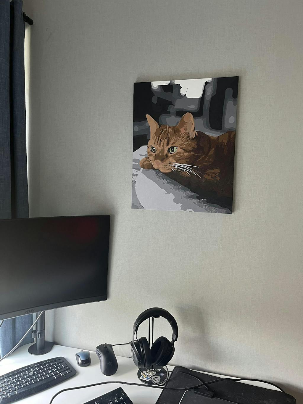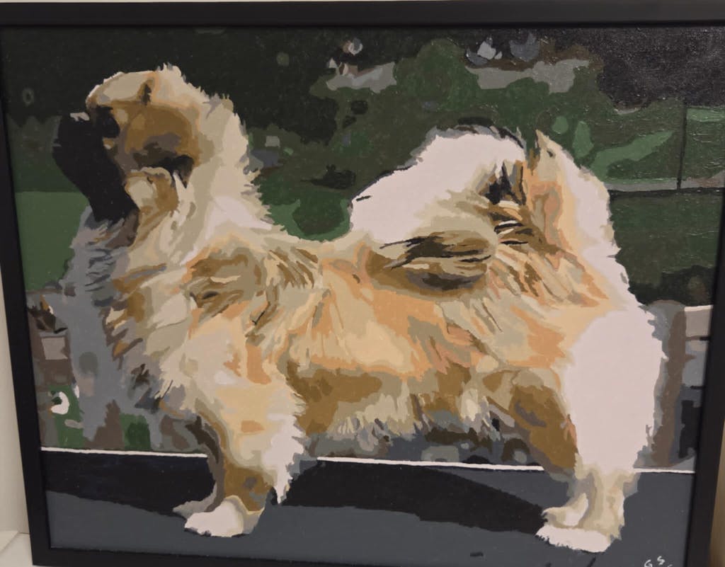 Jättenöjd med hur bilden blev som tavla. Min originalbild var helt i färg men ville få endast katten i färg och bakgrunden i svartvitt. Fick dock fixa en sån bild själv innan jag gjorde beställningen av tavlan. Beställde tavlan med ram och ångrar mig inte. Valde 24 färger. Vissa områden var pyttesmå att färga men på håll ser tavlan jättebra ut ändå. Lite svårt att veta hur mycket färg man ska pensla på för att täcka men så att det även räcker till hela tavlan. Snabb leverans, bra packad och färgerna räckte till hela tavlan samt kanterna.