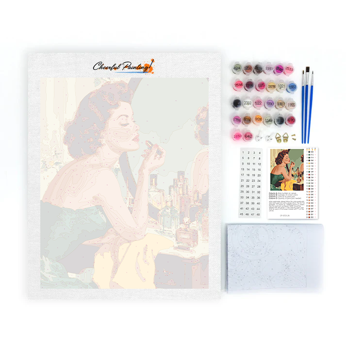 Upptäck alla viktiga saker som är prydligt förpackade i vårt Paint by Numbers-kit. Med varje komponent märkt och redo att användas kan du fokusera enbart på din konstnärliga resa. Från de livfulla färgerna till precisionspenslarna har vi sett till att ingenting står mellan dig och din duk. Detta kit är lämpligt för både nybörjare och erfarna konstnärer och erbjuder en ren, oavbruten målningsupplevelse.
