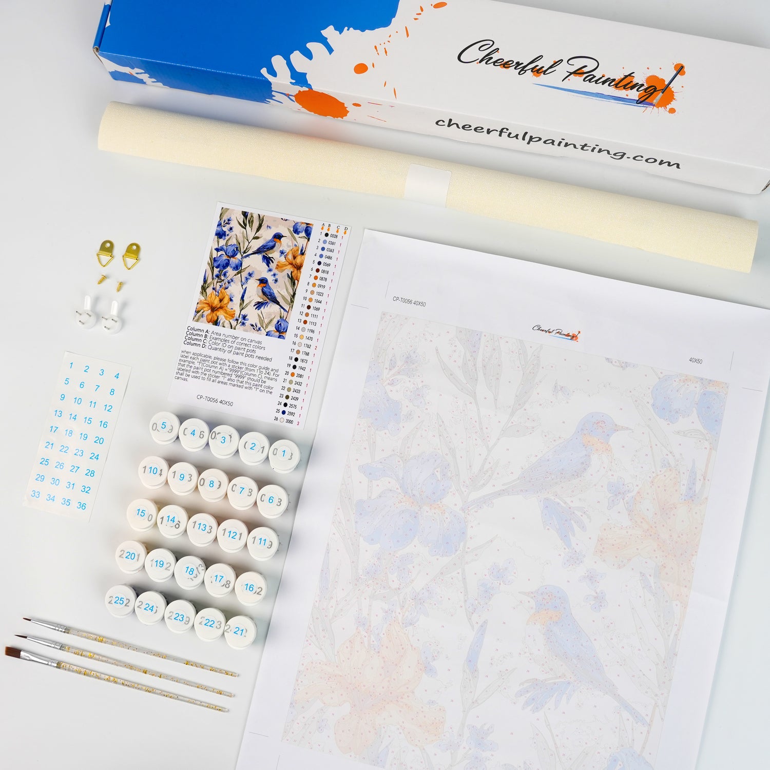 Upptäck alla viktiga saker som är prydligt förpackade i vårt Paint by Numbers-kit. Med varje komponent märkt och redo att användas kan du fokusera enbart på din konstnärliga resa. Från de livfulla färgerna till precisionspenslarna har vi sett till att ingenting står mellan dig och din duk. Detta kit är lämpligt för både nybörjare och erfarna konstnärer och erbjuder en ren, oavbruten målningsupplevelse.