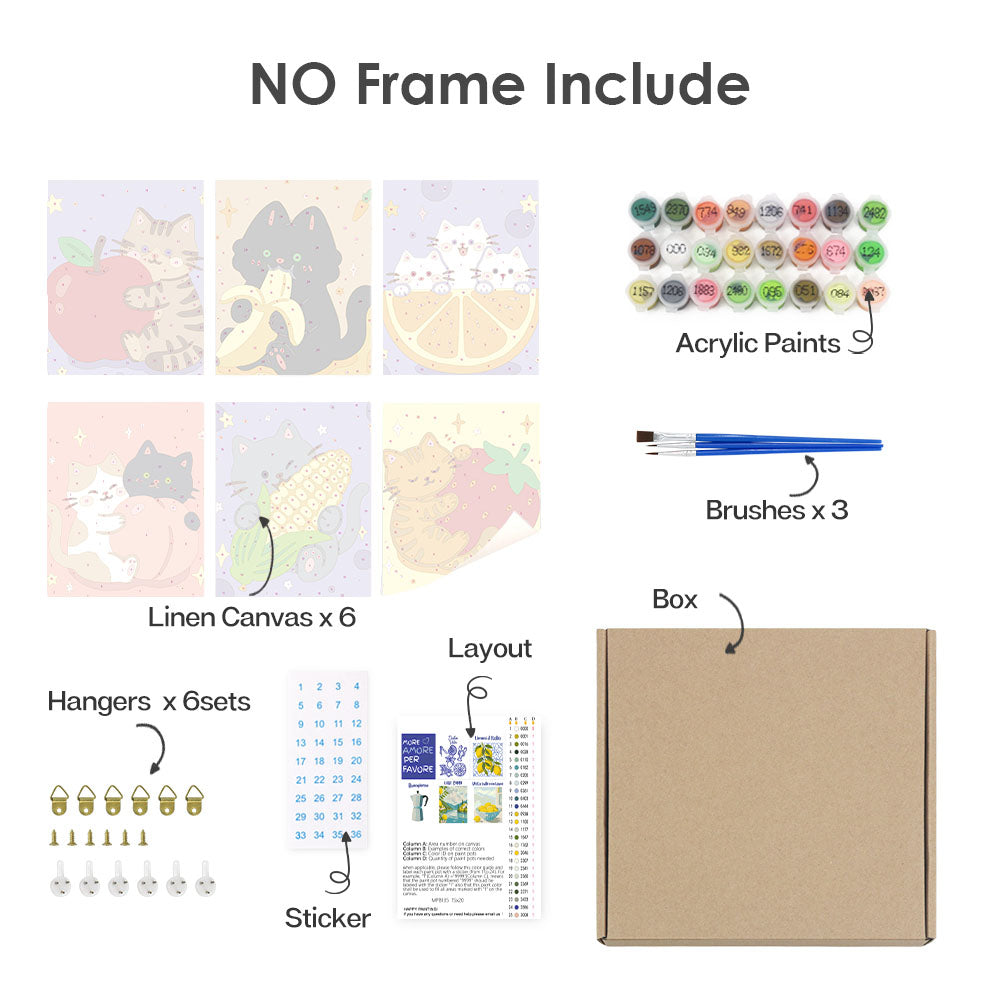 Kattungar och frukter - Måla efter nummer